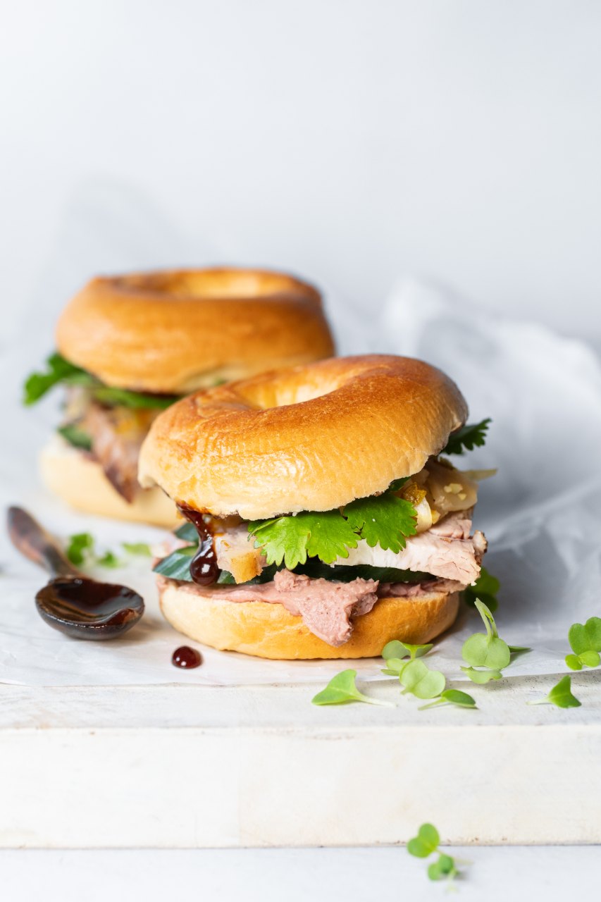 Chicken liver pate, continental cucumber, prepared pork belly, kimchi, hoisin sauce topped generously with fresh coriander.